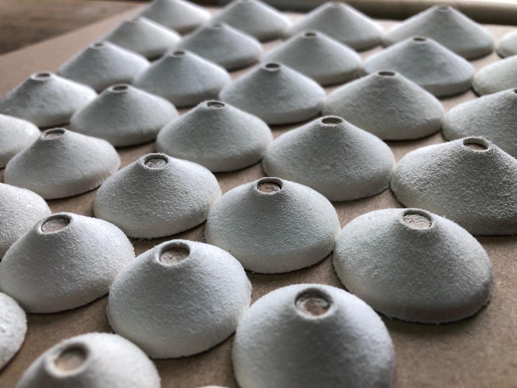 The cones are manufactured on an automatic lathe with a prefabricated cutter and drilled centrically. Only well-dried wood is used for these pallets. As sealing material, the pallets are covered with the suitable type of pallet leather.